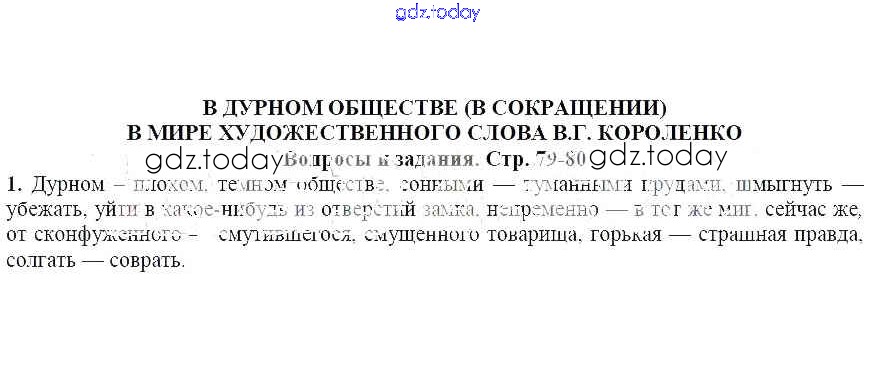 На страницах сайта gdz.today вы найдете учебный и вспомогательный материал, направленный на улучшения знаний школьной программы. ГДЗ - онлайн мир знаний Вопросы и задания В дурном обществе (в сокращении). В мире художественного слова В.Г. Короленко 1 Учебнику по Литературе для 6 класса Меркин Русское слово Инновационная школа 2016