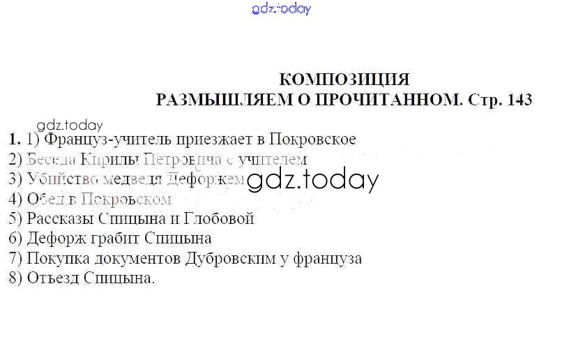 На страницах сайта gdz.today вы найдете учебный и вспомогательный материал, направленный на улучшения знаний школьной программы. ГДЗ - онлайн мир знаний Решение к части 1 (Страницы) 143 Учебнику по Литературе для 6 класса Полухина, Коровина Просвещение 2016