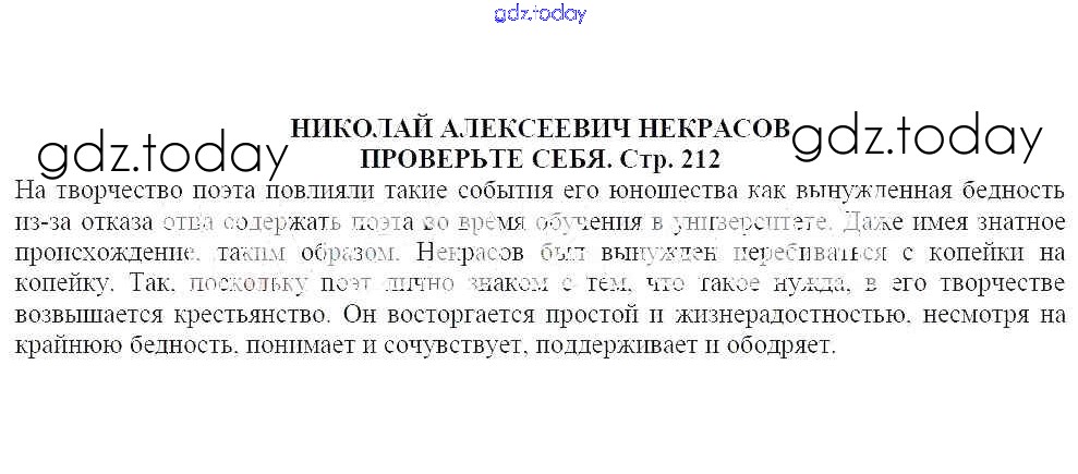 На страницах сайта gdz.today вы найдете учебный и вспомогательный материал, направленный на улучшения знаний школьной программы. ГДЗ - онлайн мир знаний Решение к части 1 (Страницы) 212 Учебнику по Литературе для 6 класса Полухина, Коровина Просвещение 2016