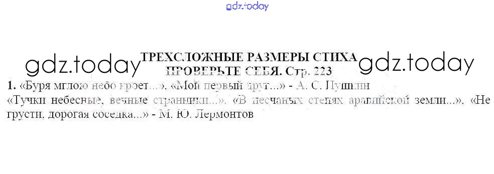 На страницах сайта gdz.today вы найдете учебный и вспомогательный материал, направленный на улучшения знаний школьной программы. ГДЗ - онлайн мир знаний Решение к части 1 (Страницы) 223 Учебнику по Литературе для 6 класса Полухина, Коровина Просвещение 2016