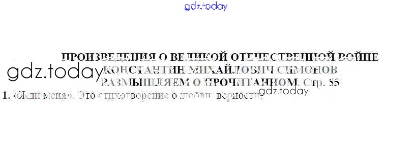 На страницах сайта gdz.today вы найдете учебный и вспомогательный материал, направленный на улучшения знаний школьной программы. ГДЗ - онлайн мир знаний Решение к части 2 (Страницы) 55 Учебнику по Литературе для 6 класса Полухина, Коровина Просвещение 2016