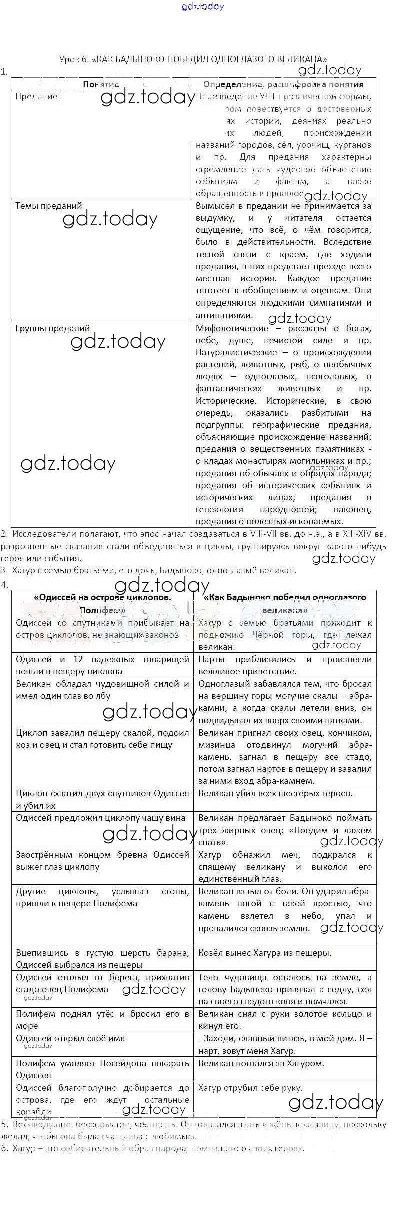 Ответы к Решение к урокам 6 Рабочей тетради по Литературе для 6 класса Соловьева Русское слово Инновационная школа 2016