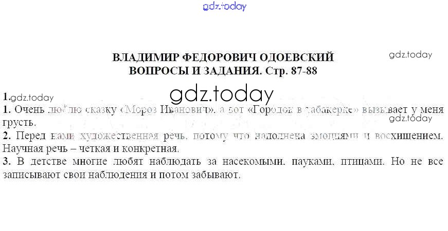 На страницах сайта gdz.today вы найдете учебный и вспомогательный материал, направленный на улучшения знаний школьной программы. ГДЗ - онлайн мир знаний Вопросы и задания Владимир Федорович Одоевский 1 Учебнику-хрестоматии по Литературе для 6 класса Курдюмова Дрофа Вертикаль 2018