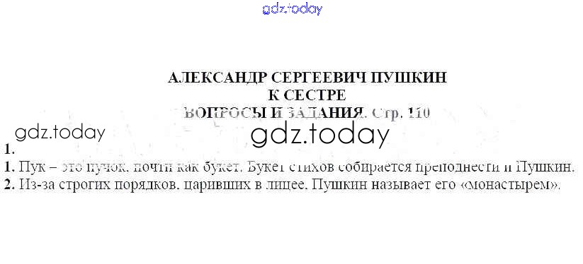 Ответы к Вопросы и задания Александр Сергеевич Пушкин. К сестре 1 Учебнику-хрестоматии по Литературе для 6 класса Курдюмова Дрофа Вертикаль 2018