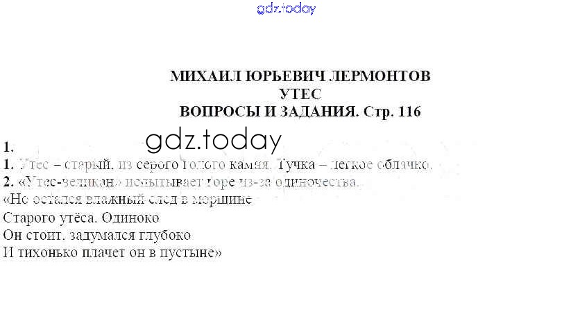 На страницах сайта gdz.today вы найдете учебный и вспомогательный материал, направленный на улучшения знаний школьной программы. ГДЗ - онлайн мир знаний Вопросы и задания Михаил Юрьевич Лермонтов. Утёс 1 Учебнику-хрестоматии по Литературе для 6 класса Курдюмова Дрофа Вертикаль 2018