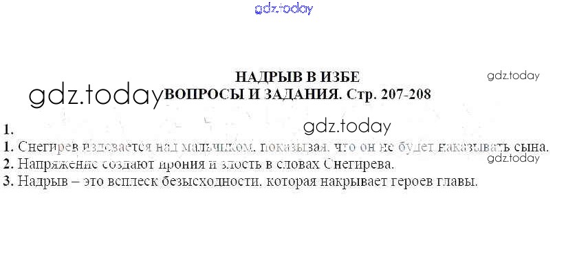 На страницах сайта gdz.today вы найдете учебный и вспомогательный материал, направленный на улучшения знаний школьной программы. ГДЗ - онлайн мир знаний Вопросы и задания Надрыв в избе 1 Учебнику-хрестоматии по Литературе для 6 класса Курдюмова Дрофа Вертикаль 2018