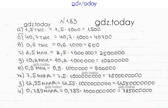Ответы к Решение к упражнениям 183 Учебнику по Математике для 6 класса Бунимович, Кузнецова Просвещение, Просвещение Сферы 2014, 2019
