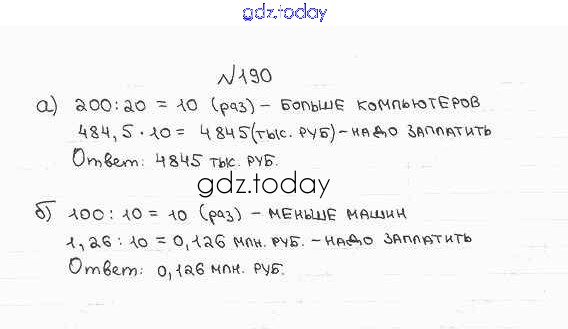 Ответы к Решение к упражнениям 190 Учебнику по Математике для 6 класса Бунимович, Кузнецова Просвещение, Просвещение Сферы 2014, 2019