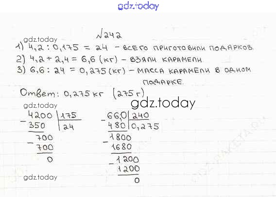 Ответы к Решение к упражнениям 242 Учебнику по Математике для 6 класса Бунимович, Кузнецова Просвещение, Просвещение Сферы 2014, 2019