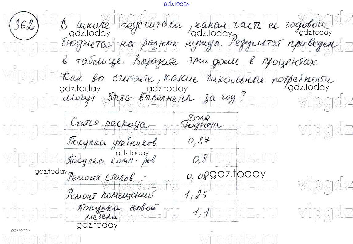 На страницах сайта gdz.today вы найдете учебный и вспомогательный материал, направленный на улучшения знаний школьной программы. ГДЗ - онлайн мир знаний Решение к упражнениям 362 Учебнику по Математике для 6 класса Бунимович, Кузнецова Просвещение, Просвещение Сферы 2014, 2019