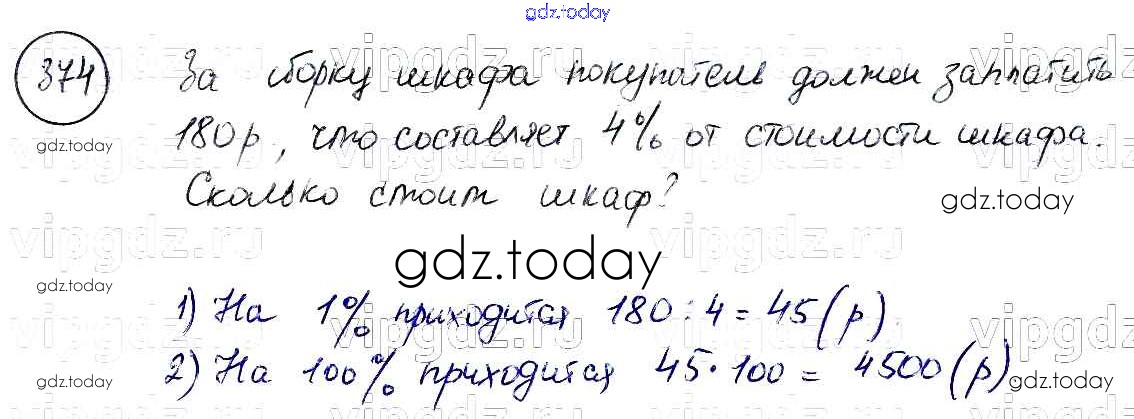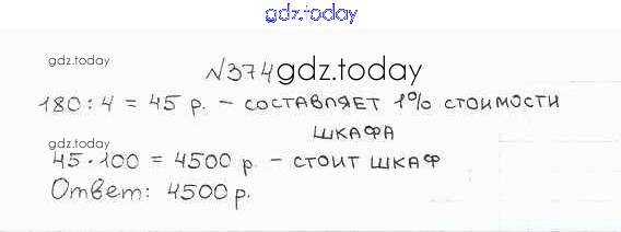 Ответы к Решение к упражнениям 374 Учебнику по Математике для 6 класса Бунимович, Кузнецова Просвещение, Просвещение Сферы 2014, 2019