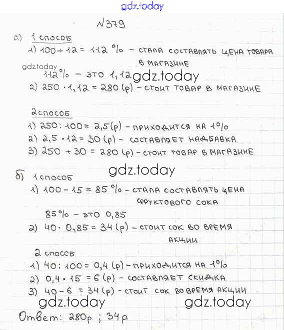 Ответы к Решение к упражнениям 379 Учебнику по Математике для 6 класса Бунимович, Кузнецова Просвещение, Просвещение Сферы 2014, 2019