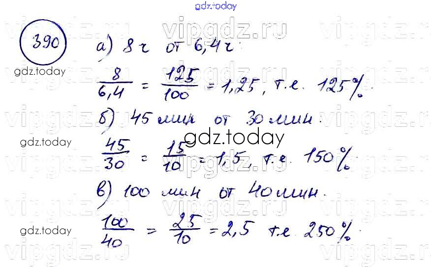 Ответы к Решение к упражнениям 390 Учебнику по Математике для 6 класса Бунимович, Кузнецова Просвещение, Просвещение Сферы 2014, 2019
