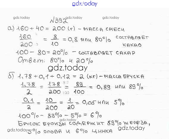 Ответы к Решение к упражнениям 392 Учебнику по Математике для 6 класса Бунимович, Кузнецова Просвещение, Просвещение Сферы 2014, 2019