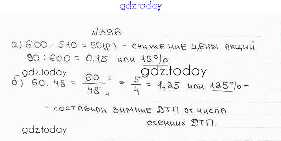 Ответы к Решение к упражнениям 396 Учебнику по Математике для 6 класса Бунимович, Кузнецова Просвещение, Просвещение Сферы 2014, 2019
