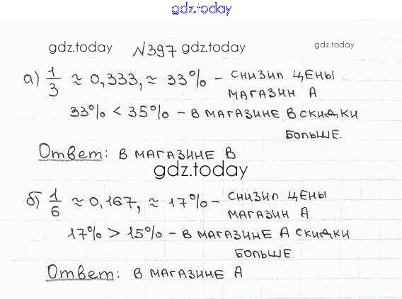Ответы к Решение к упражнениям 397 Учебнику по Математике для 6 класса Бунимович, Кузнецова Просвещение, Просвещение Сферы 2014, 2019