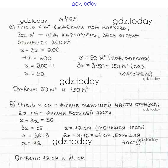 Ответы к Решение к упражнениям 465 Учебнику по Математике для 6 класса Бунимович, Кузнецова Просвещение, Просвещение Сферы 2014, 2019