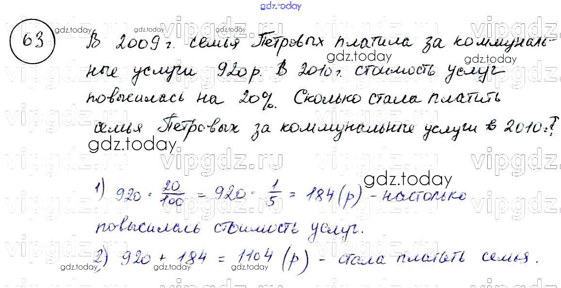 Ответы к Решение к упражнениям 63 Учебнику по Математике для 6 класса Бунимович, Кузнецова Просвещение, Просвещение Сферы 2014, 2019