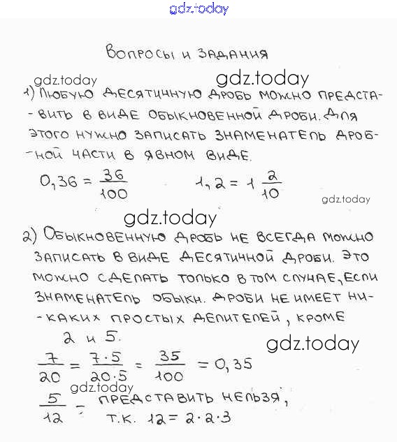Ответы к Решение к вопросам и заданиям. Параграфы 10 Учебнику по Математике для 6 класса Бунимович, Кузнецова Просвещение, Просвещение Сферы 2014, 2019
