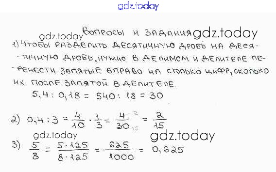 Ответы к Решение к вопросам и заданиям. Параграфы 15 Учебнику по Математике для 6 класса Бунимович, Кузнецова Просвещение, Просвещение Сферы 2014, 2019
