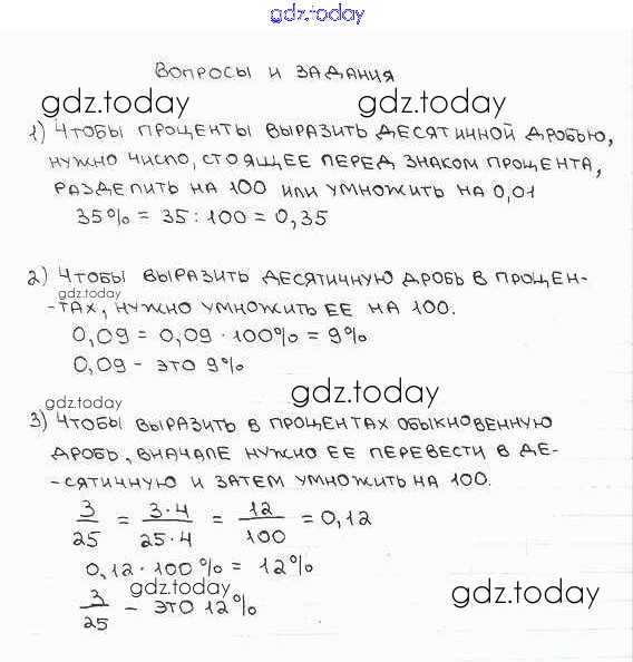 Ответы к Решение к вопросам и заданиям. Параграфы 23 Учебнику по Математике для 6 класса Бунимович, Кузнецова Просвещение, Просвещение Сферы 2014, 2019