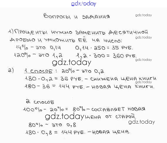 Ответы к Решение к вопросам и заданиям. Параграфы 24 Учебнику по Математике для 6 класса Бунимович, Кузнецова Просвещение, Просвещение Сферы 2014, 2019