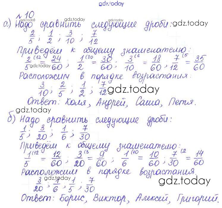 Ответы к Решение к упражнениям 10 Задачнику по Математике для 6 класса Бунимович, Кузнецова Просвещение Сферы 2014
