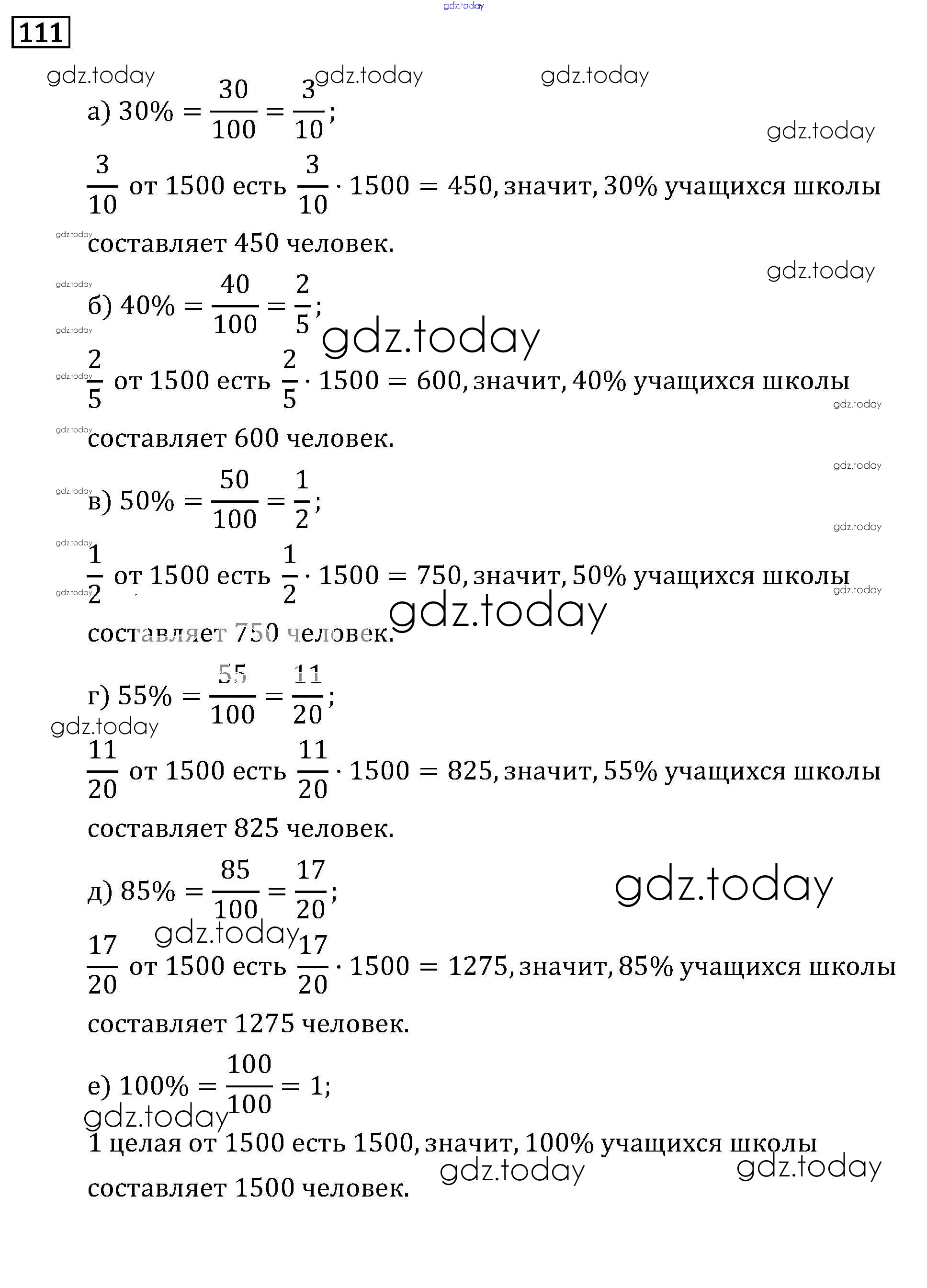 Ответы к Решение к упражнениям 111 Задачнику по Математике для 6 класса Бунимович, Кузнецова Просвещение Сферы 2014