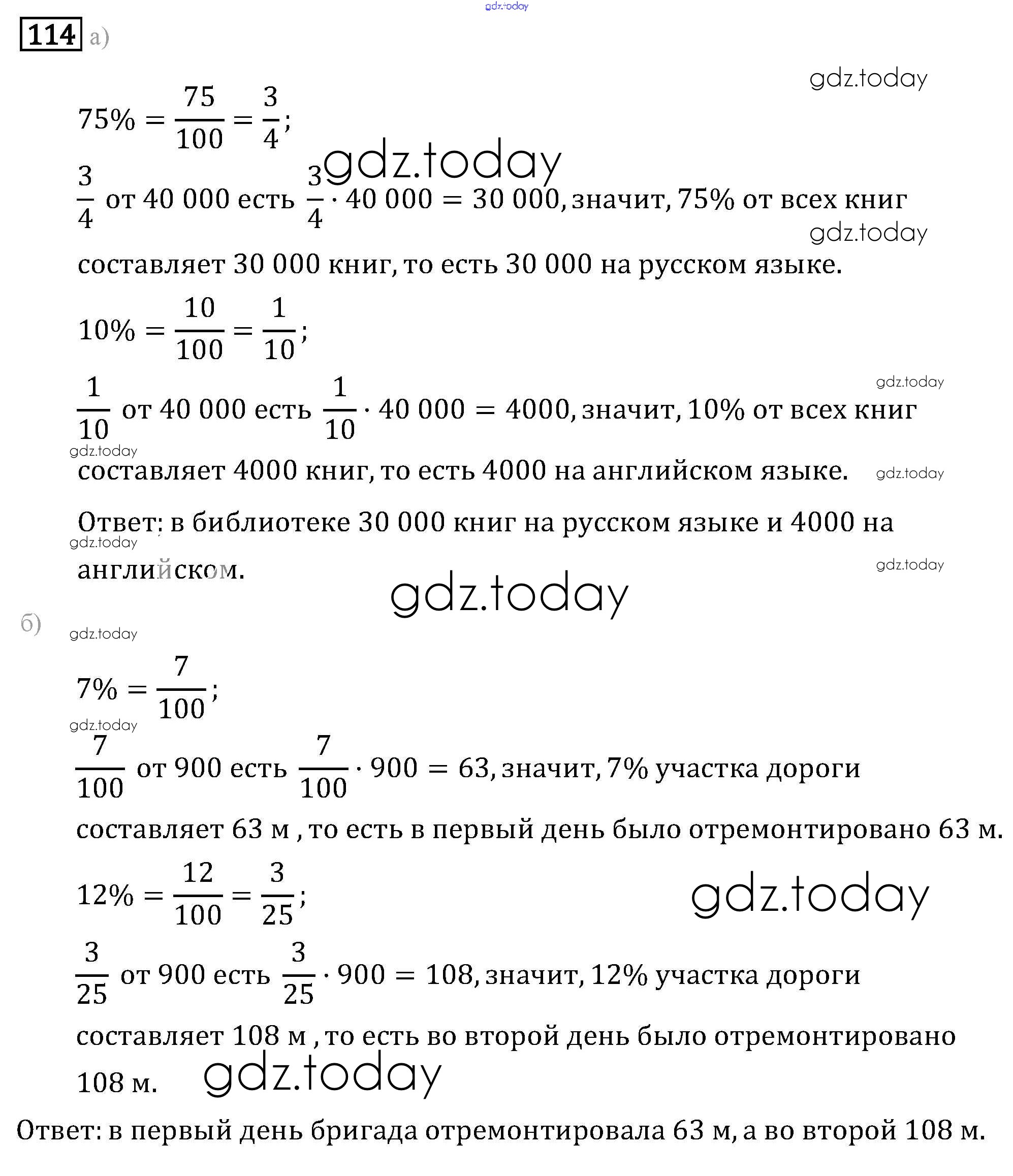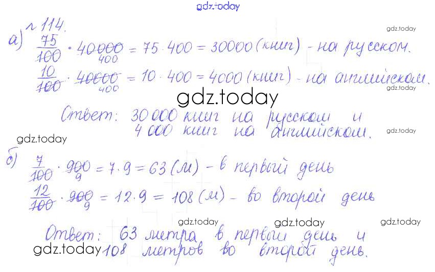 Ответы к Решение к упражнениям 114 Задачнику по Математике для 6 класса Бунимович, Кузнецова Просвещение Сферы 2014