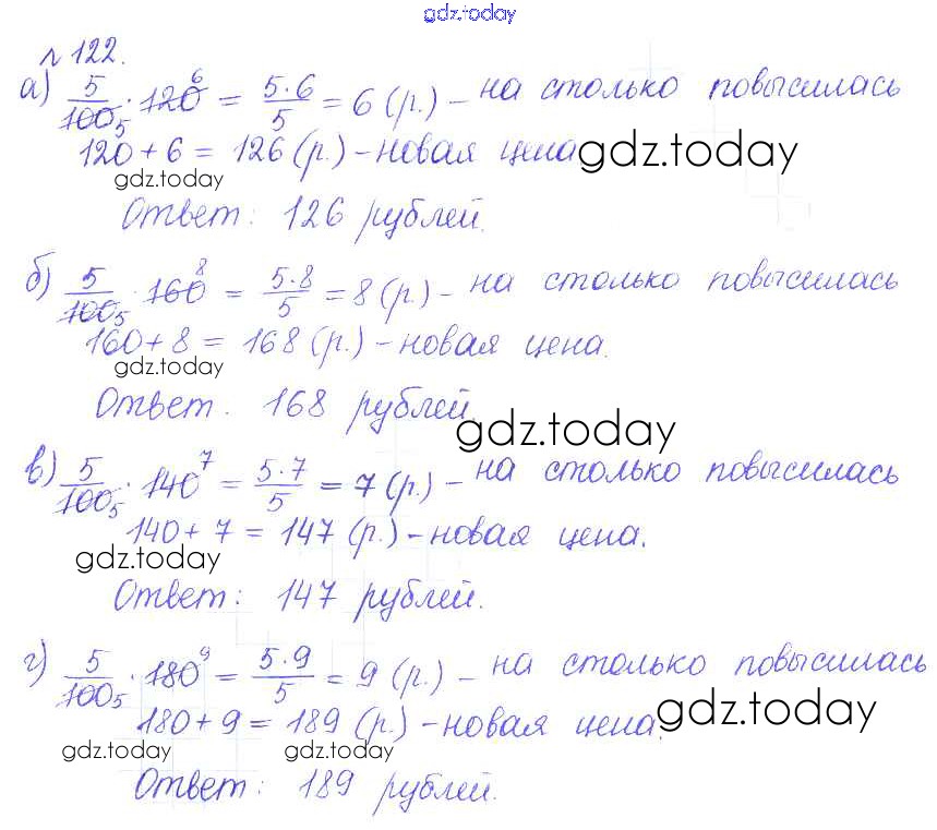 Ответы к Решение к упражнениям 122 Задачнику по Математике для 6 класса Бунимович, Кузнецова Просвещение Сферы 2014