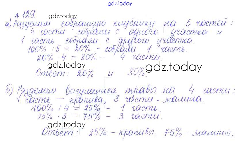 Ответы к Решение к упражнениям 129 Задачнику по Математике для 6 класса Бунимович, Кузнецова Просвещение Сферы 2014