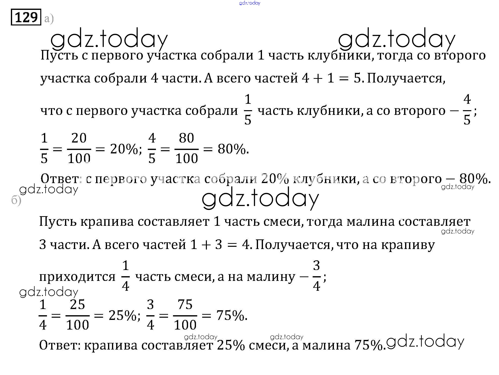 На страницах сайта gdz.today вы найдете учебный и вспомогательный материал, направленный на улучшения знаний школьной программы. ГДЗ - онлайн мир знаний Решение к упражнениям 129 Задачнику по Математике для 6 класса Бунимович, Кузнецова Просвещение Сферы 2014