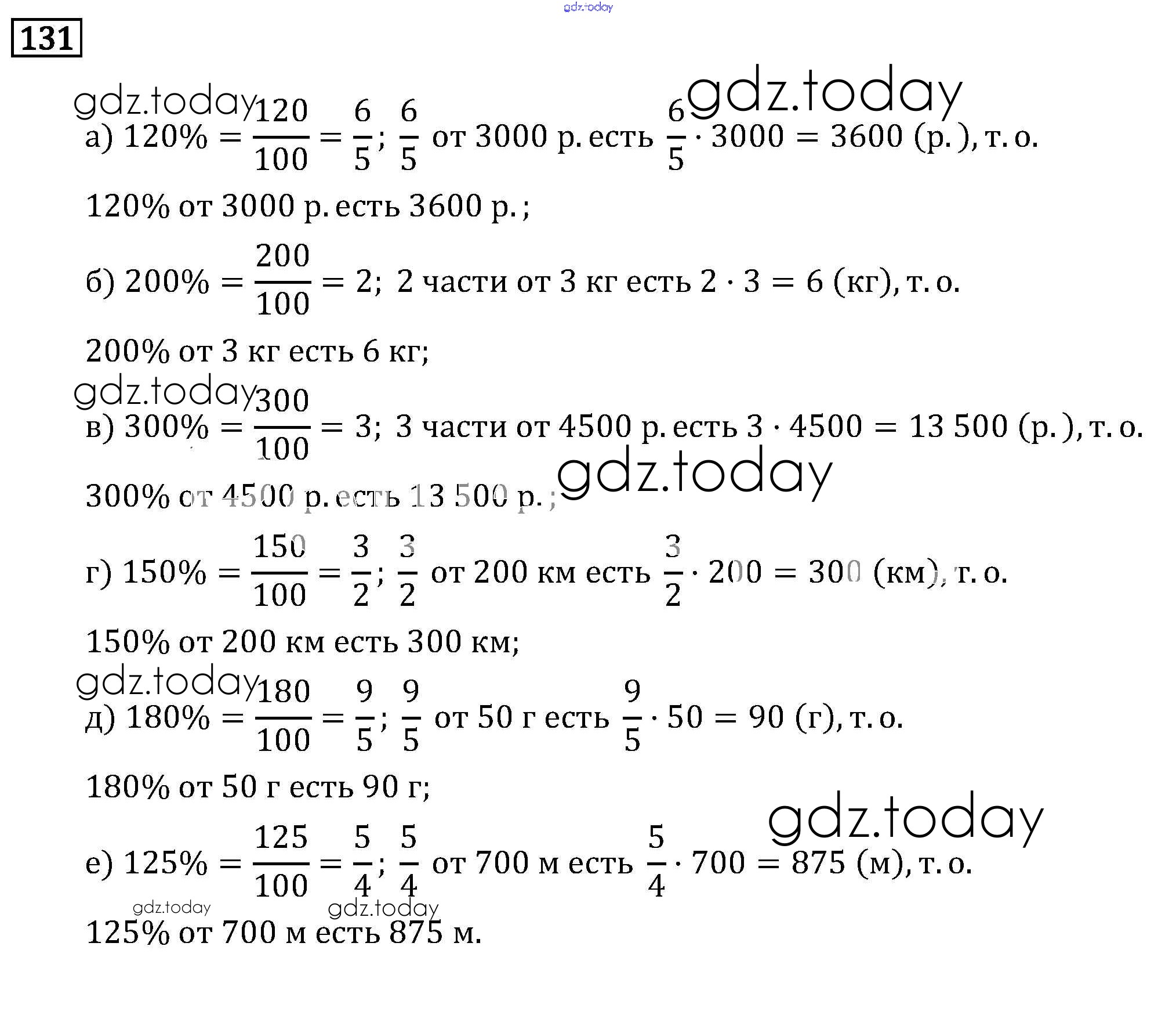 Ответы к Решение к упражнениям 131 Задачнику по Математике для 6 класса Бунимович, Кузнецова Просвещение Сферы 2014