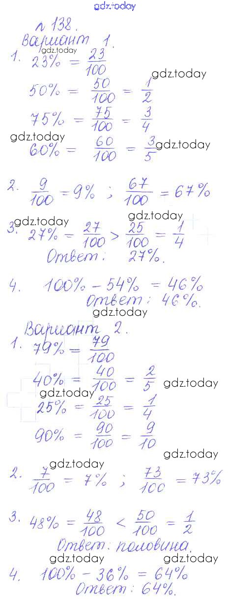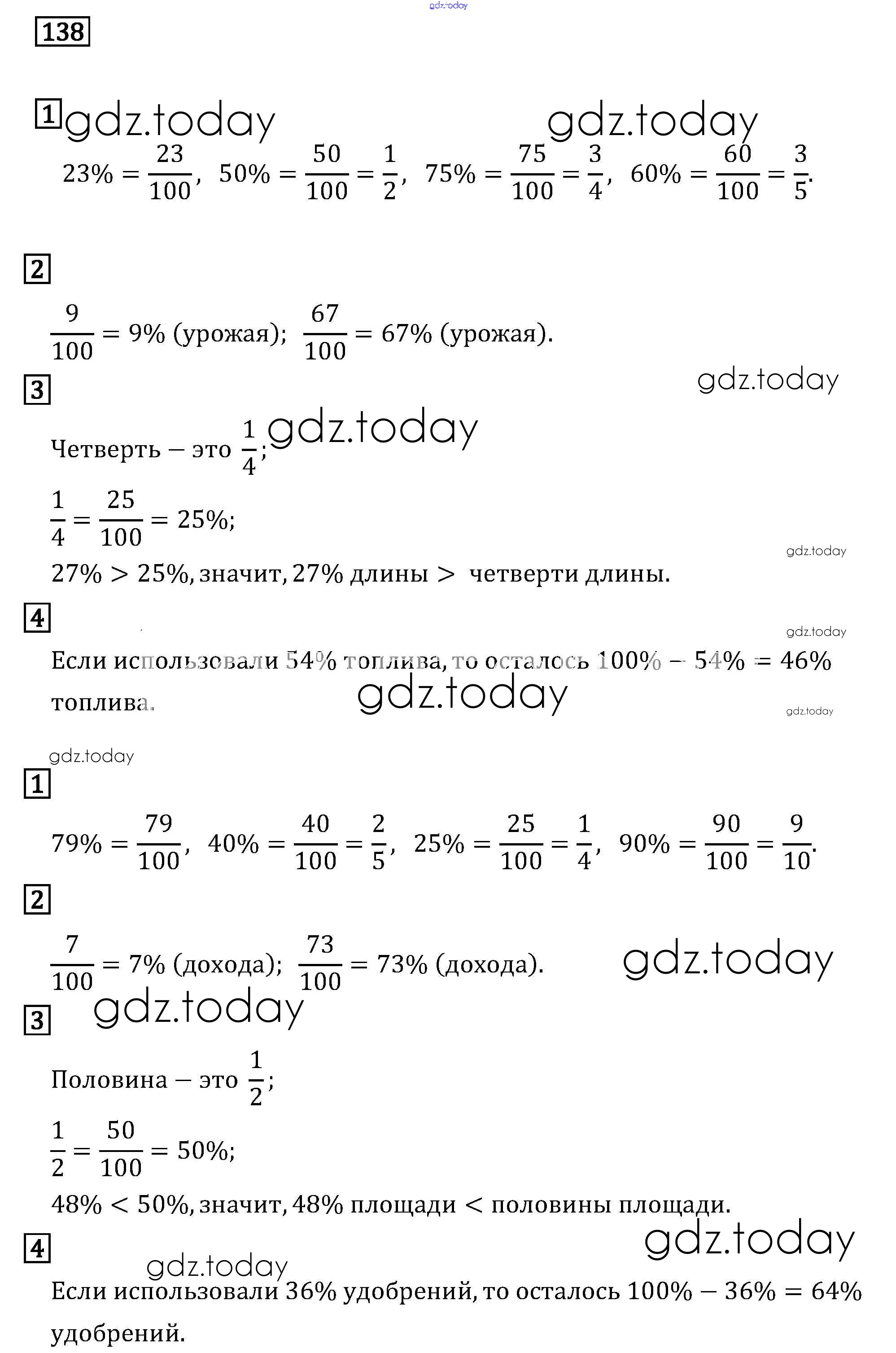 Ответы к Решение к упражнениям 138 Задачнику по Математике для 6 класса Бунимович, Кузнецова Просвещение Сферы 2014