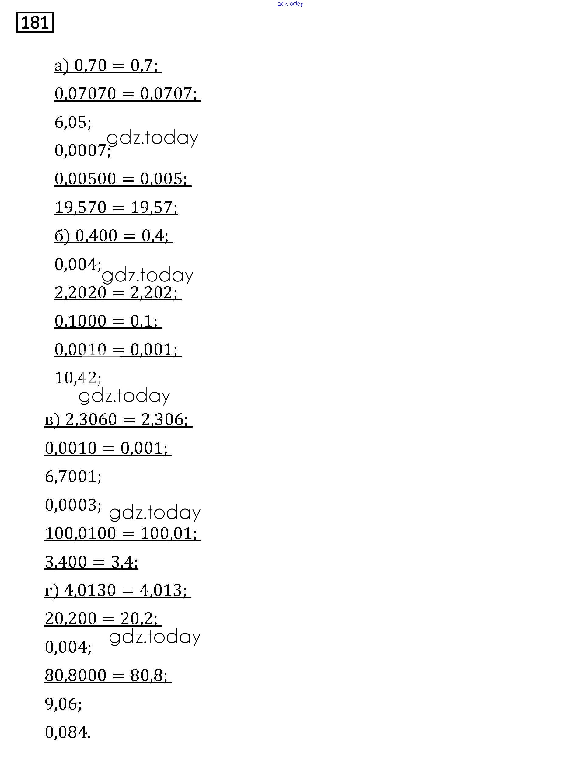 Ответы к Решение к упражнениям 181 Задачнику по Математике для 6 класса Бунимович, Кузнецова Просвещение Сферы 2014