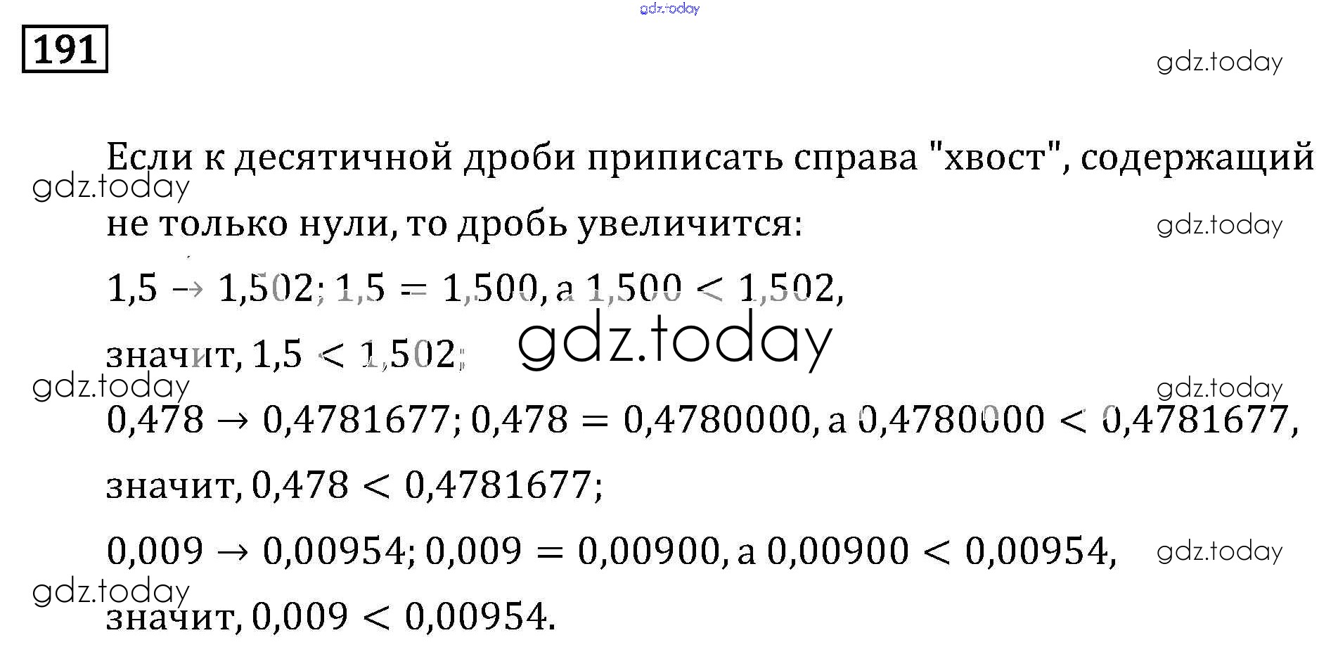 На страницах сайта gdz.today вы найдете учебный и вспомогательный материал, направленный на улучшения знаний школьной программы. ГДЗ - онлайн мир знаний Решение к упражнениям 191 Задачнику по Математике для 6 класса Бунимович, Кузнецова Просвещение Сферы 2014