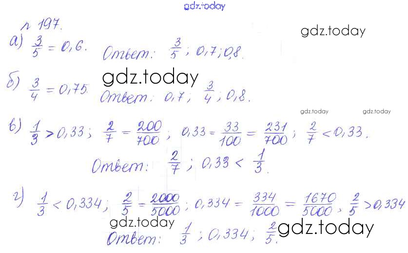 Ответы к Решение к упражнениям 197 Задачнику по Математике для 6 класса Бунимович, Кузнецова Просвещение Сферы 2014
