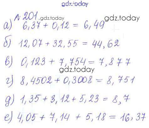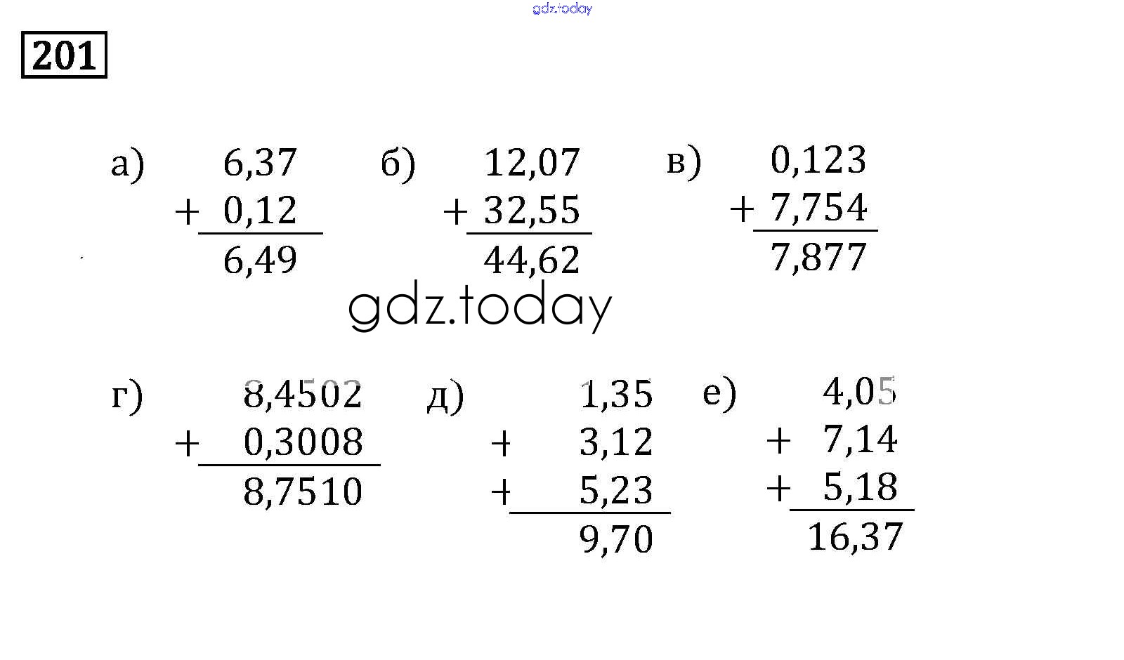 Ответы к Решение к упражнениям 201 Задачнику по Математике для 6 класса Бунимович, Кузнецова Просвещение Сферы 2014