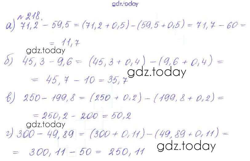 Ответы к Решение к упражнениям 218 Задачнику по Математике для 6 класса Бунимович, Кузнецова Просвещение Сферы 2014