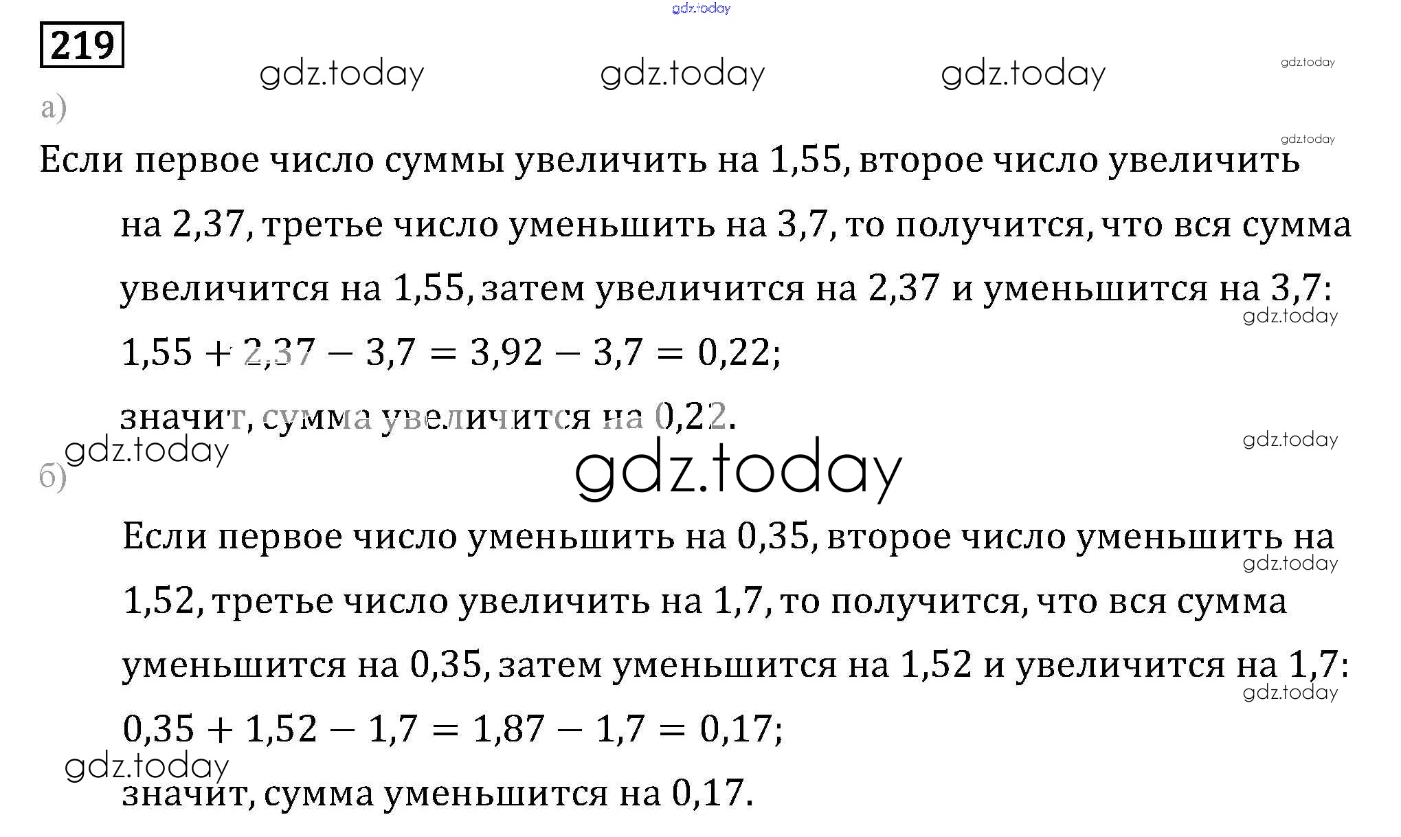 Ответы к Решение к упражнениям 219 Задачнику по Математике для 6 класса Бунимович, Кузнецова Просвещение Сферы 2014