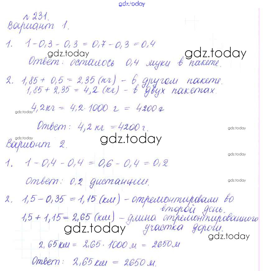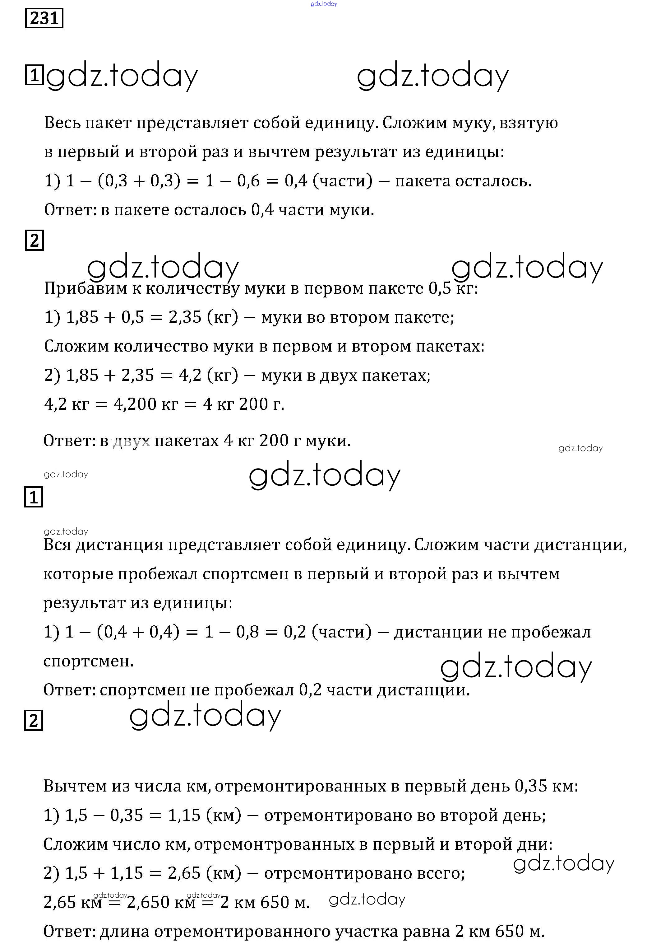 Ответы к Решение к упражнениям 231 Задачнику по Математике для 6 класса Бунимович, Кузнецова Просвещение Сферы 2014