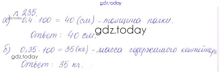 Ответы к Решение к упражнениям 235 Задачнику по Математике для 6 класса Бунимович, Кузнецова Просвещение Сферы 2014