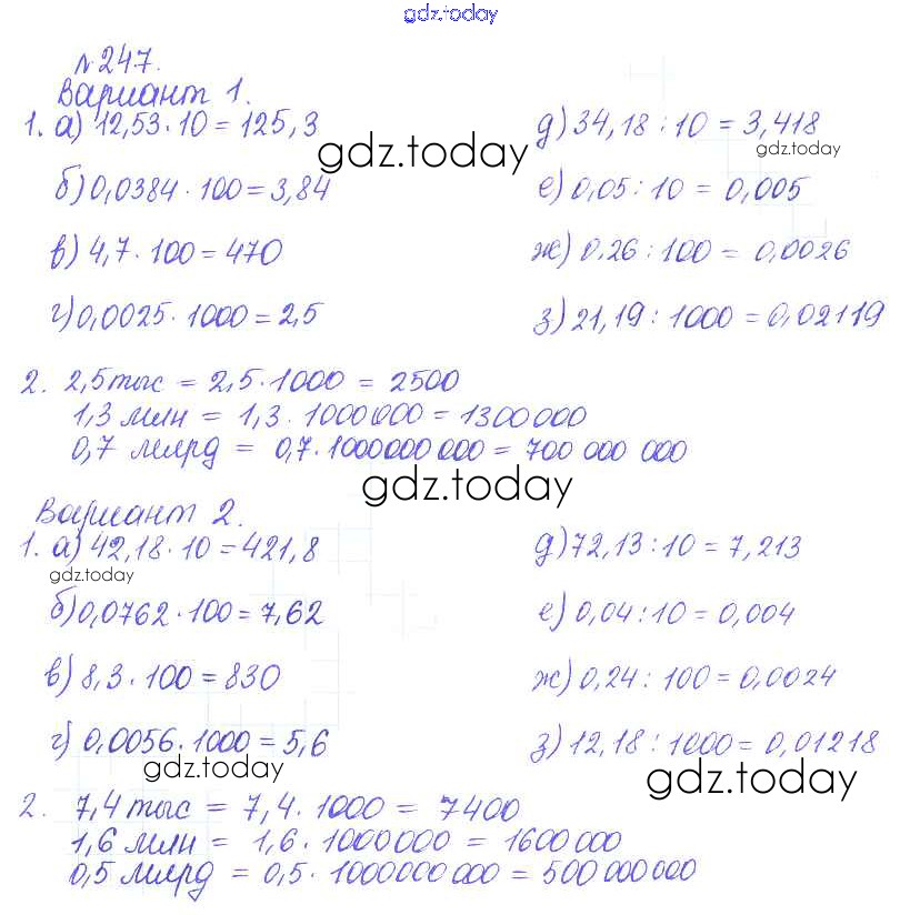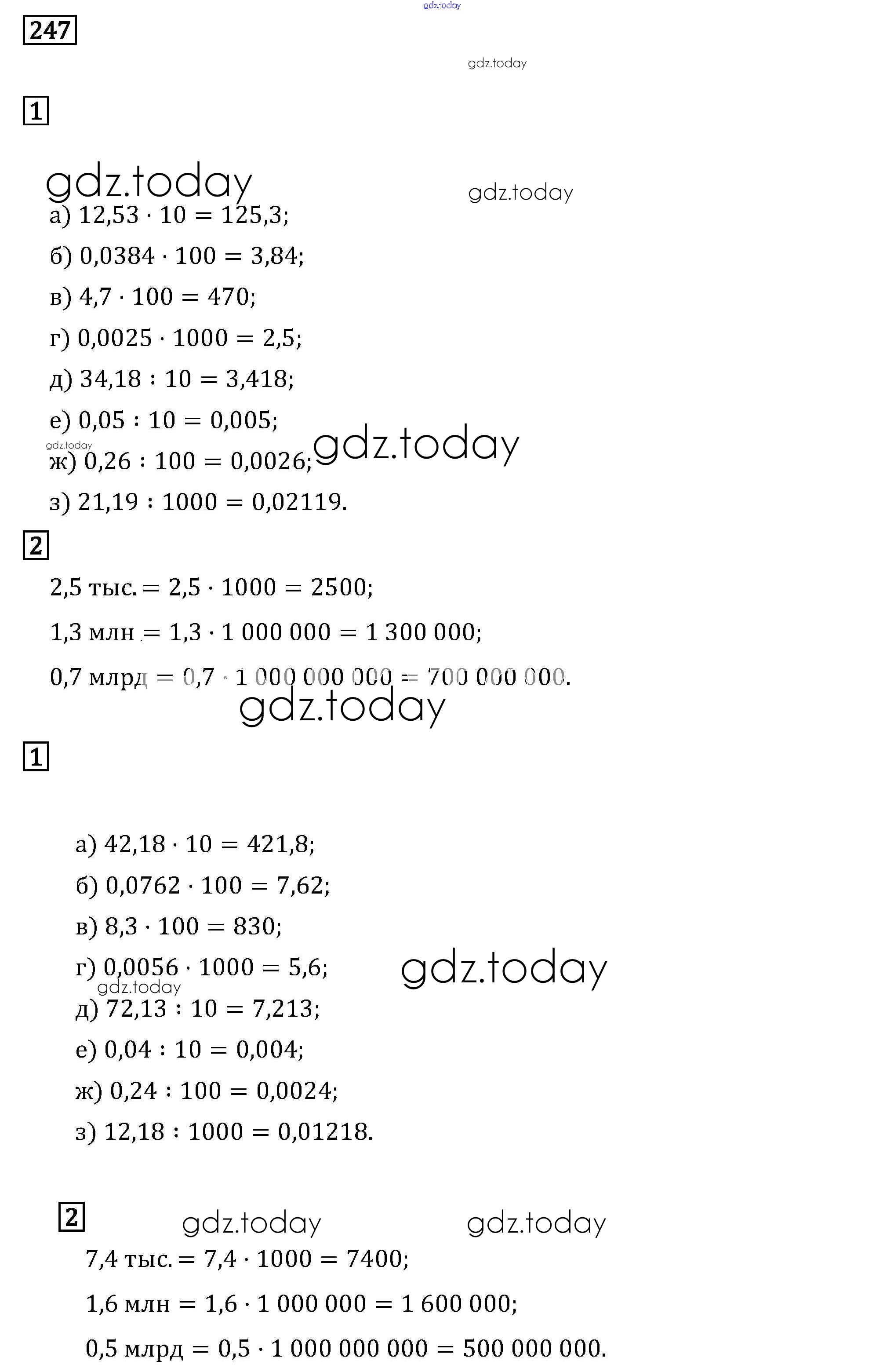 Ответы к Решение к упражнениям 247 Задачнику по Математике для 6 класса Бунимович, Кузнецова Просвещение Сферы 2014