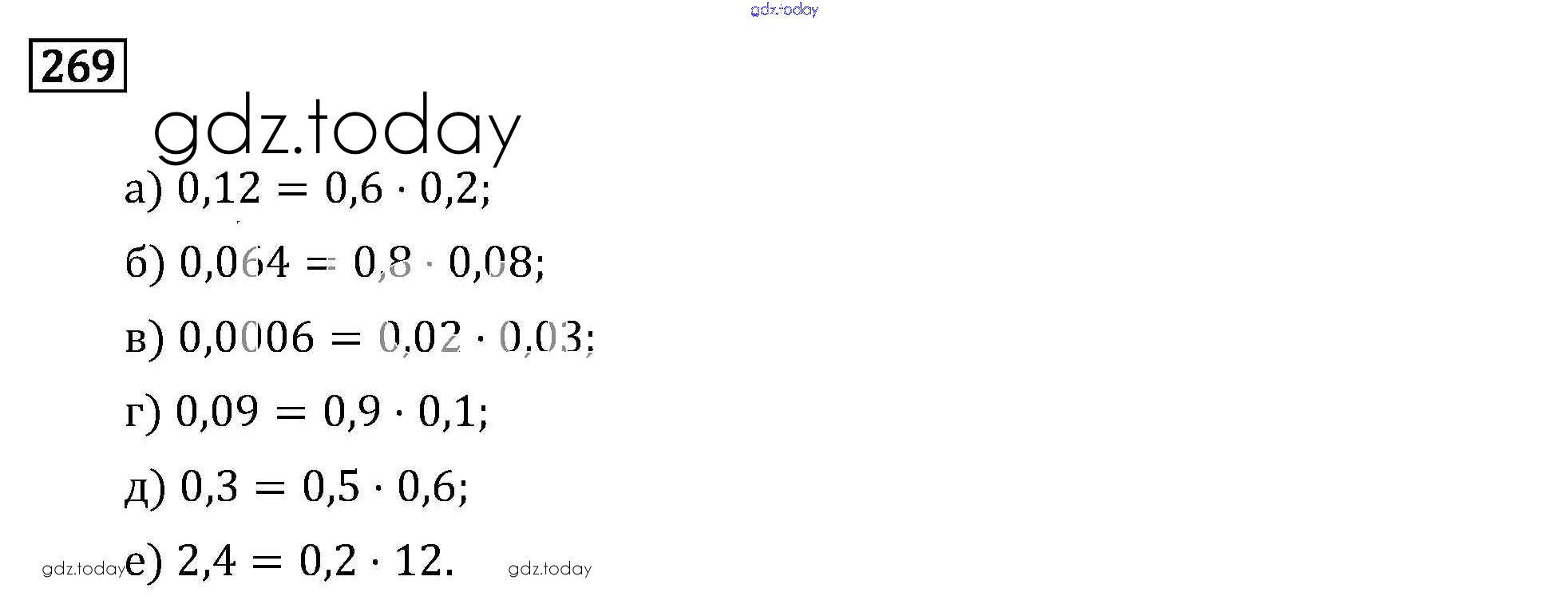 На страницах сайта gdz.today вы найдете учебный и вспомогательный материал, направленный на улучшения знаний школьной программы. ГДЗ - онлайн мир знаний Решение к упражнениям 269 Задачнику по Математике для 6 класса Бунимович, Кузнецова Просвещение Сферы 2014