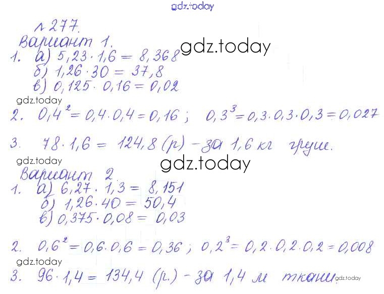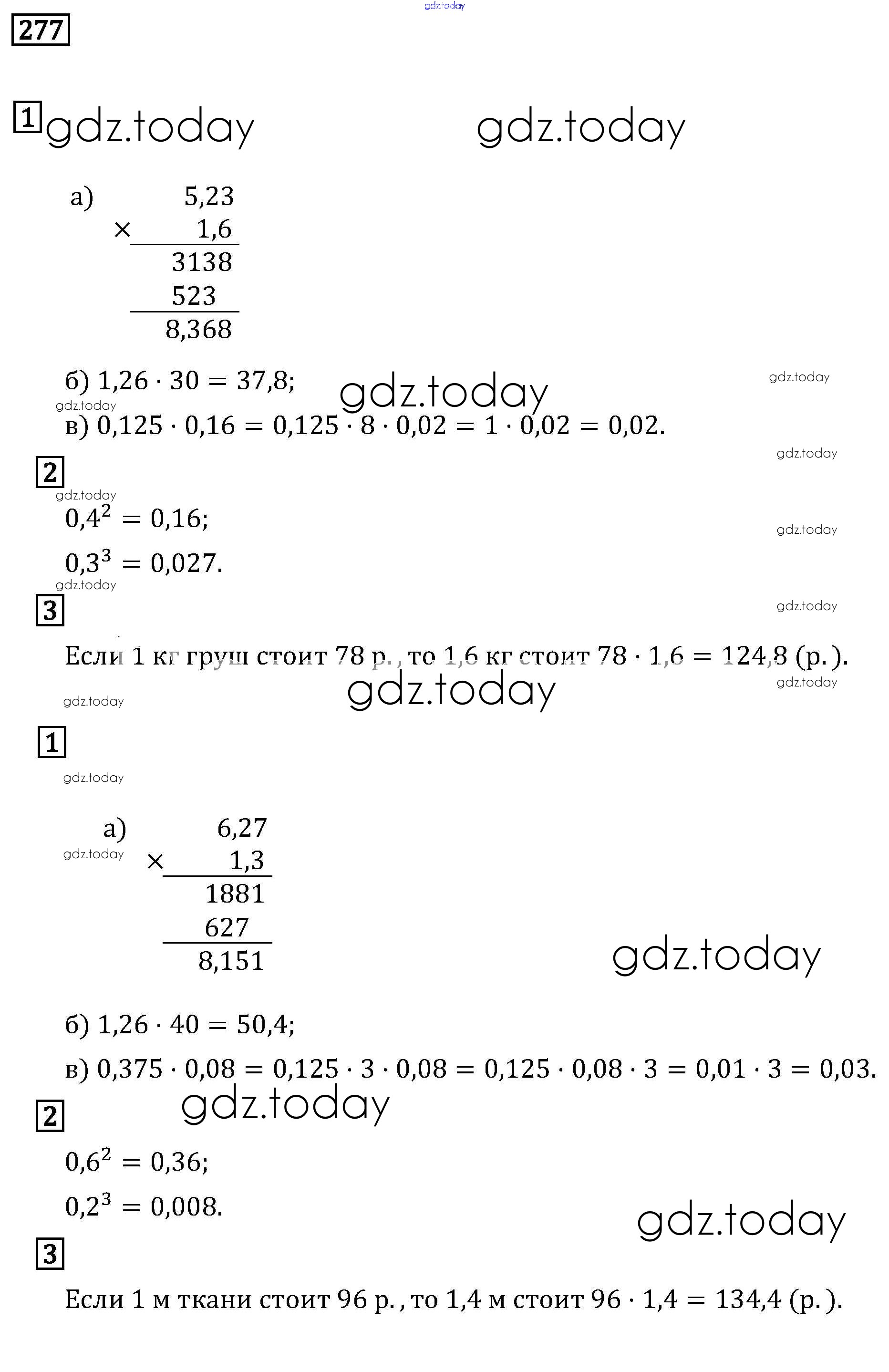 Ответы к Решение к упражнениям 277 Задачнику по Математике для 6 класса Бунимович, Кузнецова Просвещение Сферы 2014