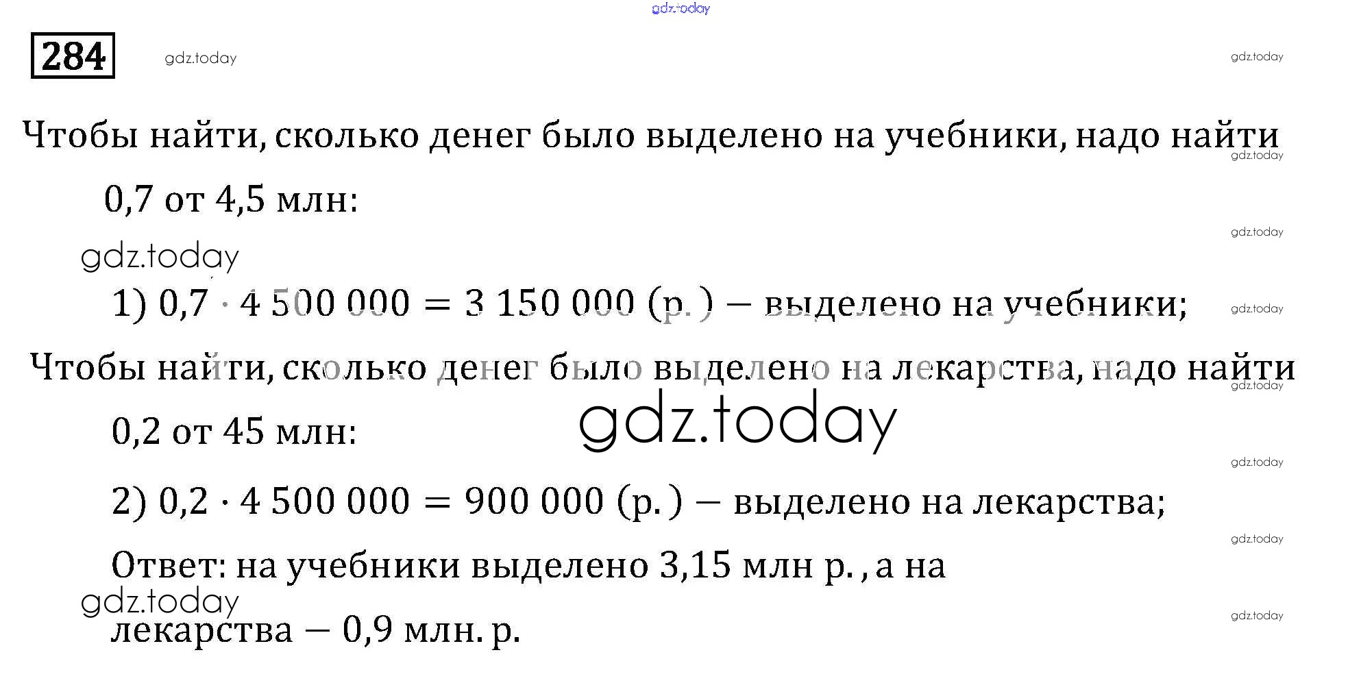 На страницах сайта gdz.today вы найдете учебный и вспомогательный материал, направленный на улучшения знаний школьной программы. ГДЗ - онлайн мир знаний Решение к упражнениям 284 Задачнику по Математике для 6 класса Бунимович, Кузнецова Просвещение Сферы 2014