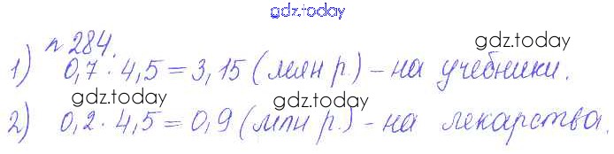 Ответы к Решение к упражнениям 284 Задачнику по Математике для 6 класса Бунимович, Кузнецова Просвещение Сферы 2014
