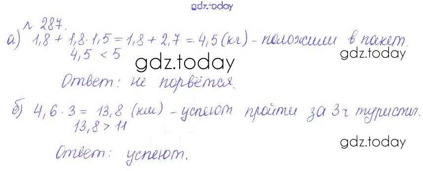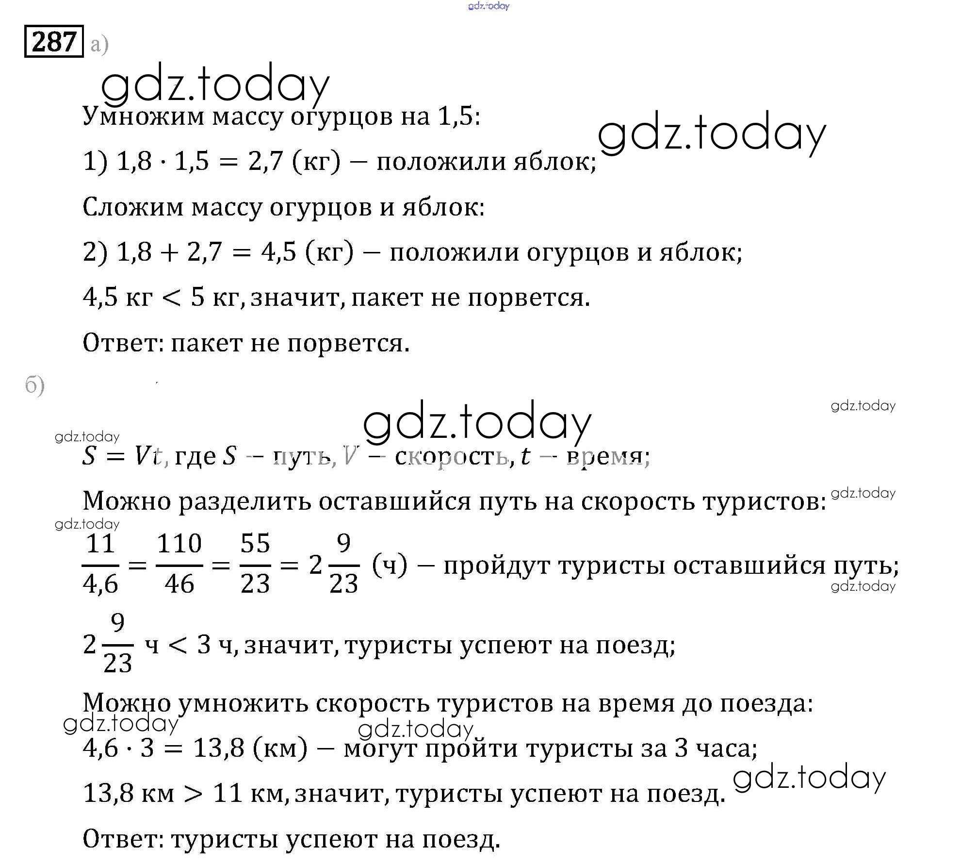 Ответы к Решение к упражнениям 287 Задачнику по Математике для 6 класса Бунимович, Кузнецова Просвещение Сферы 2014