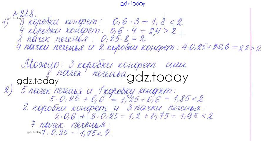 Ответы к Решение к упражнениям 288 Задачнику по Математике для 6 класса Бунимович, Кузнецова Просвещение Сферы 2014