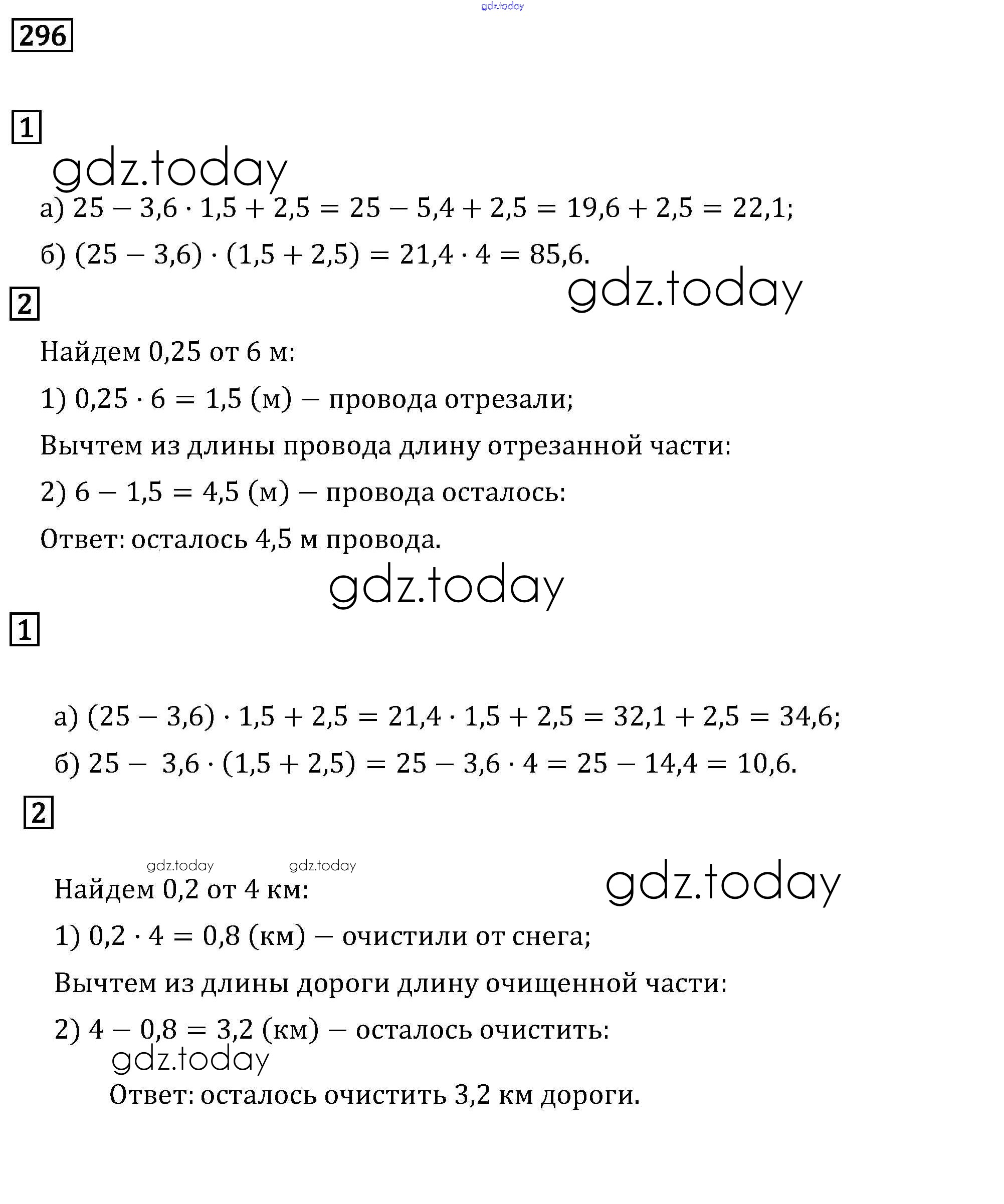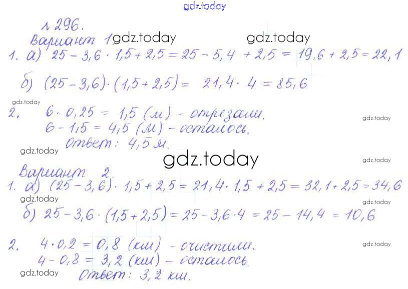 Ответы к Решение к упражнениям 296 Задачнику по Математике для 6 класса Бунимович, Кузнецова Просвещение Сферы 2014